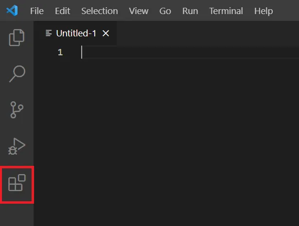 The language server extension is a .visx file - a VSCode extension bundle. To install it, first download the extension from the downloads page and then open VSCode and click on the Extensions icon: