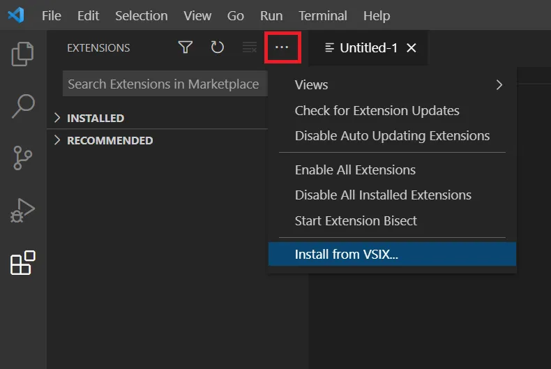 After that click on the Views and More Actions icon and choose the install from VISX option: